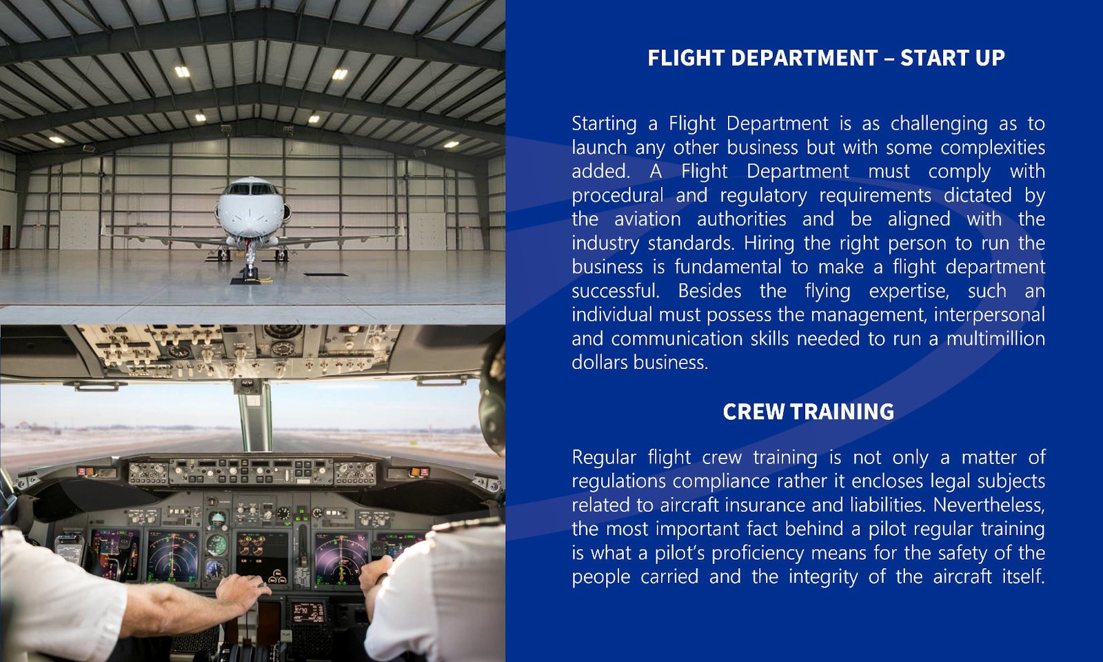 we can provide all the expertise needed to start and successfully run your Flight Department and assist you with the definition and comprehension of your Crew Training requirements.